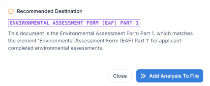 One of AI’s greatest strengths is its ability to streamline repetitive tasks. When documents are uploaded to MuniCollab, our AI assesses document types, extracts key information like generation dates, provides concise summaries, and even recommends the appropriate destination folder based on your municipality’s digital filing system.